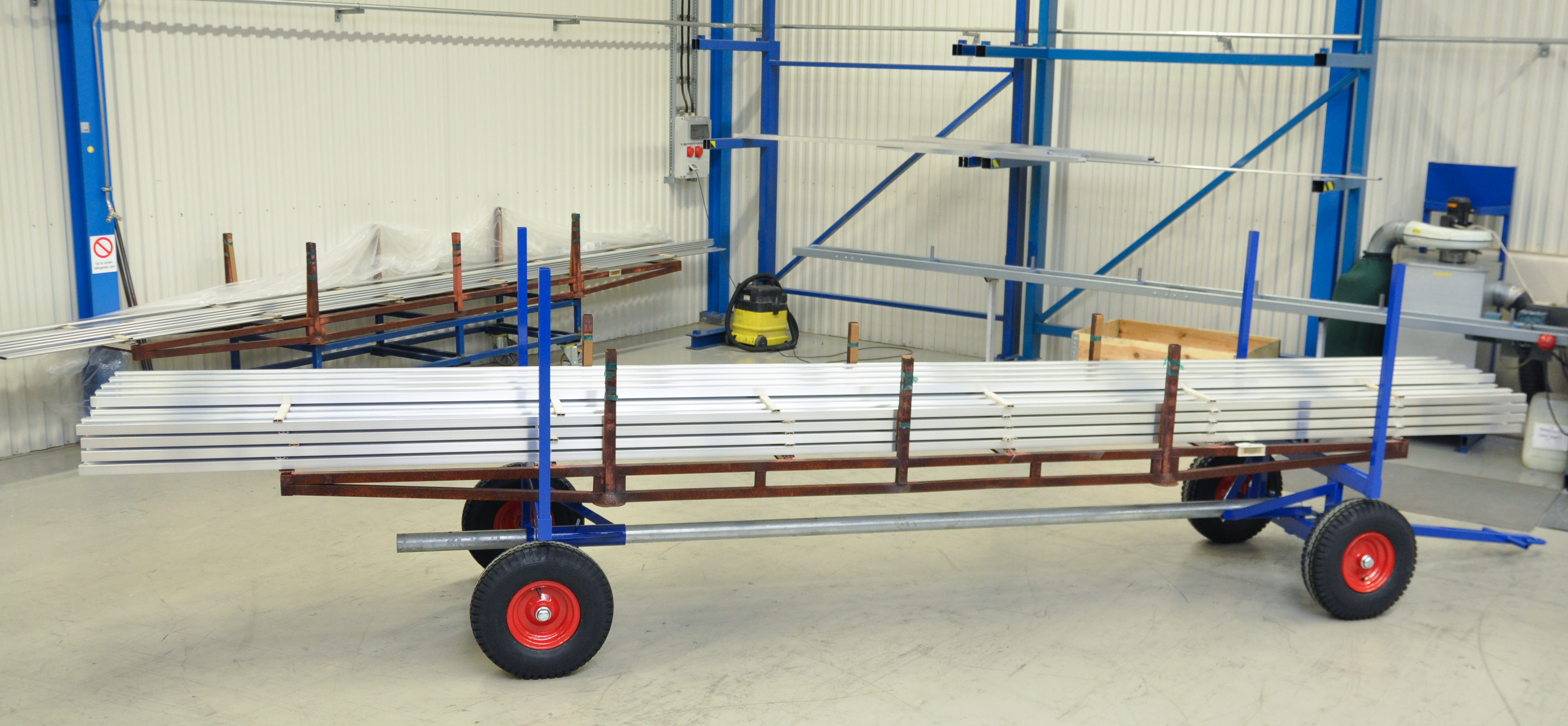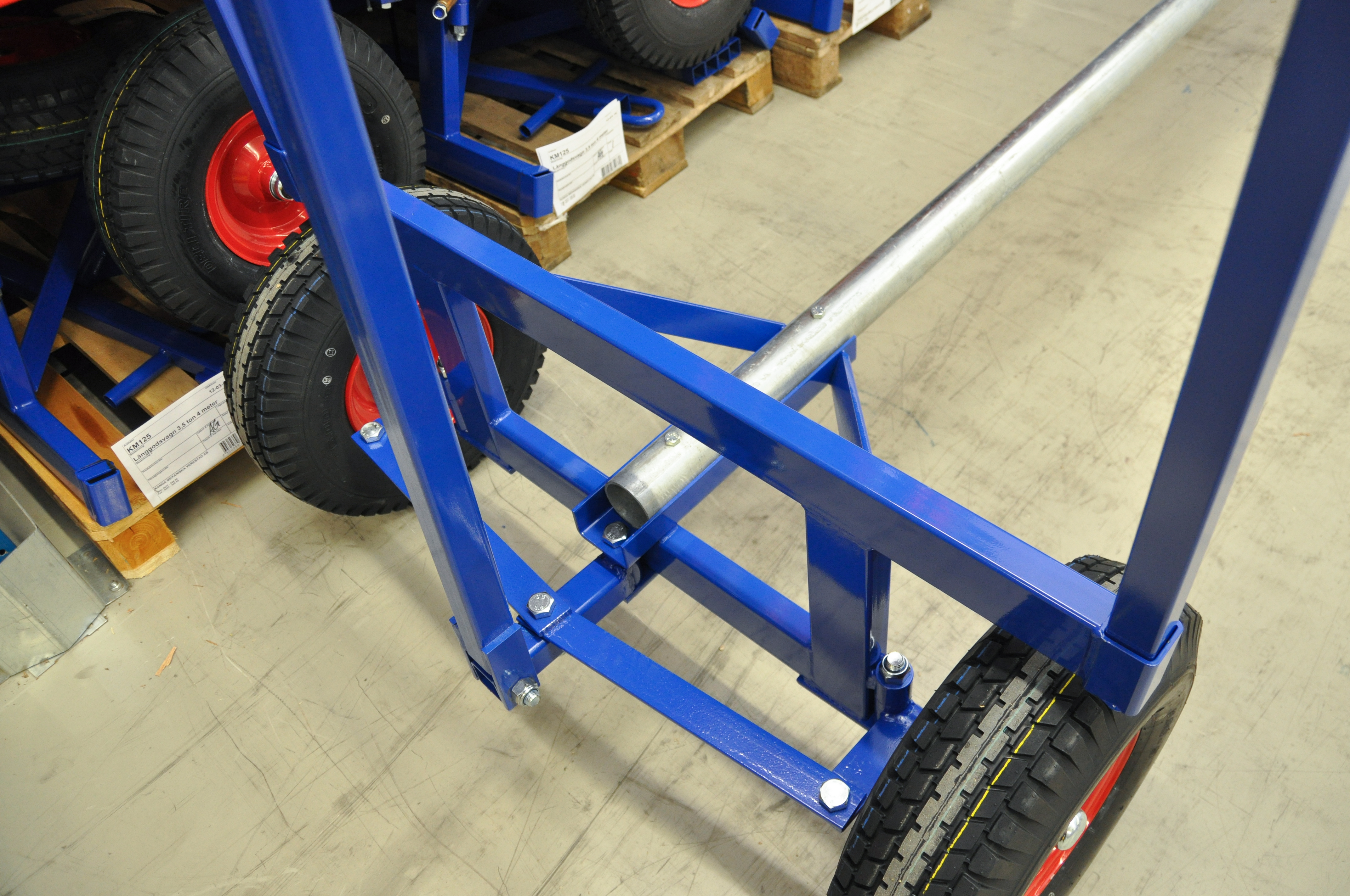 Långgodsvagn som är anpassad för långt och tungt gods, flera justermöjligheter vilket gör den smidig i alla miljöer. Levereras omonterad.